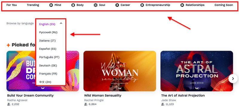 Click on the Programs tab, scroll down the page and filter your search by language or categories